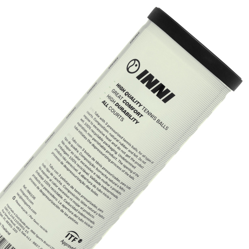 A bola de tênis INNI Championship é uma opção de alta durabilidade e excelente custo-benefício, ideal para todos os níveis de jogo e tipos de quadra. Aprovada pela ITF (Federação Internacional de Tênis), utiliza feltro sintético agulhado Textech, garantindo boa resistência à deformação e baixo desgaste.