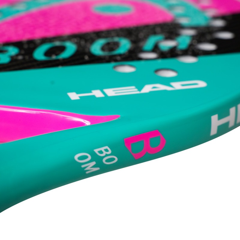 Redefina o seu jogo com a BOOM! Inédita na linha de beach tennis da HEAD, a raquete BOOM é perfeita para quem busca uma potência explosiva, assim como a raquete de Tênis que inspirou seu nome. A BOOM é composta de Carbono 3K e EVA Soft, tem um perfil mais fino, com 20 mm, e é uma raquete de manuseio rápido e leve. Além de ser uma raquete potente, ela também permite um bom controle em todos os golpes. Com seu design descolado e vivo, o jogo fica ainda mais divertido e impactante!